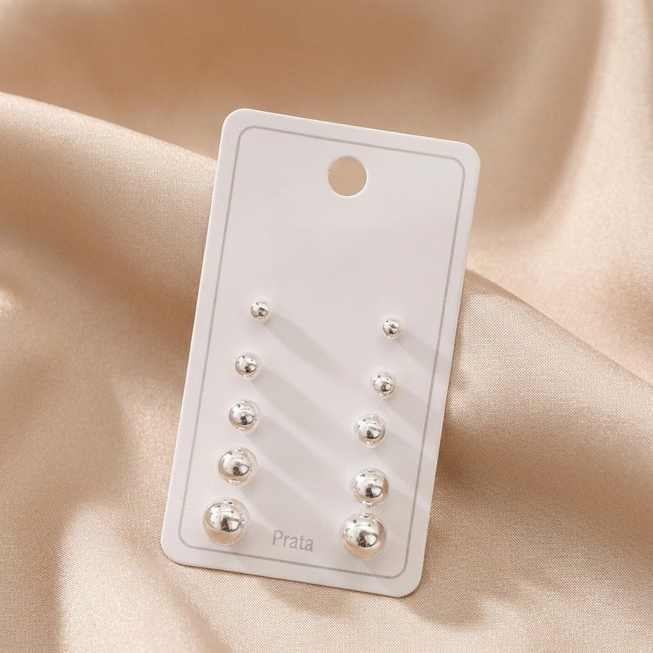 Kit Brincos Bolinhas Quíntuplo Prata 925